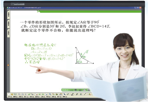 10、抗干擾:無電磁和光干擾問題,使用激光教鞭激光指示在板面時(shí)不會影響電子白板正常使用,抗光干擾能力強(qiáng),使用時(shí)不受陽光,燈光,紅外等光線影響。